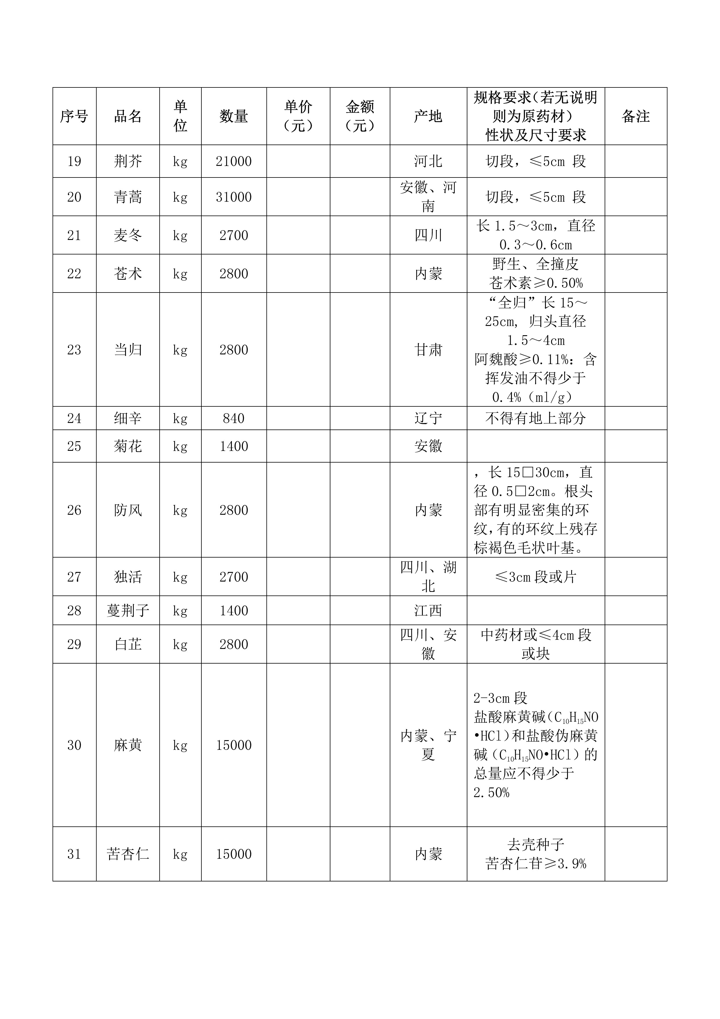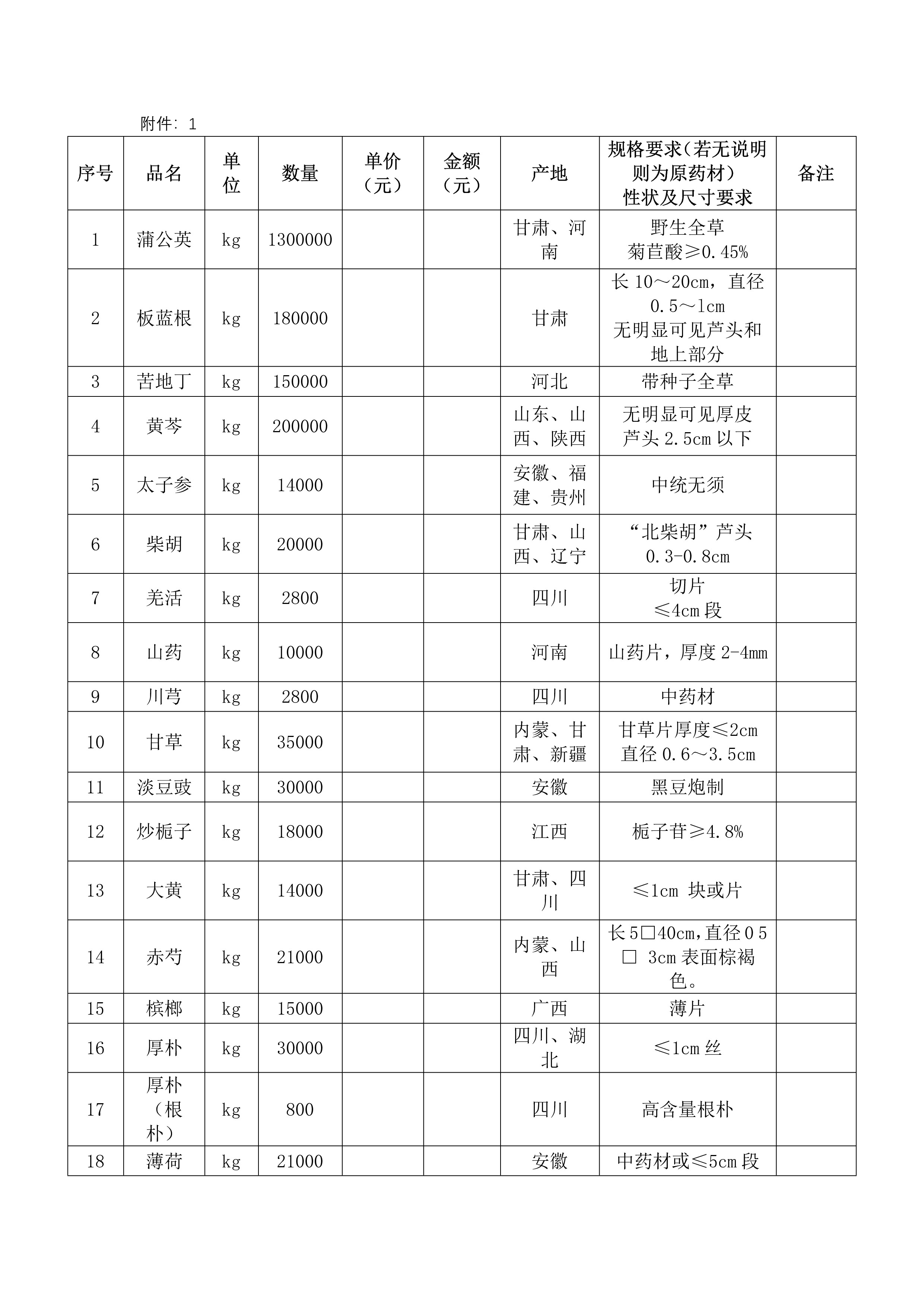 中药材采购项目招标公示