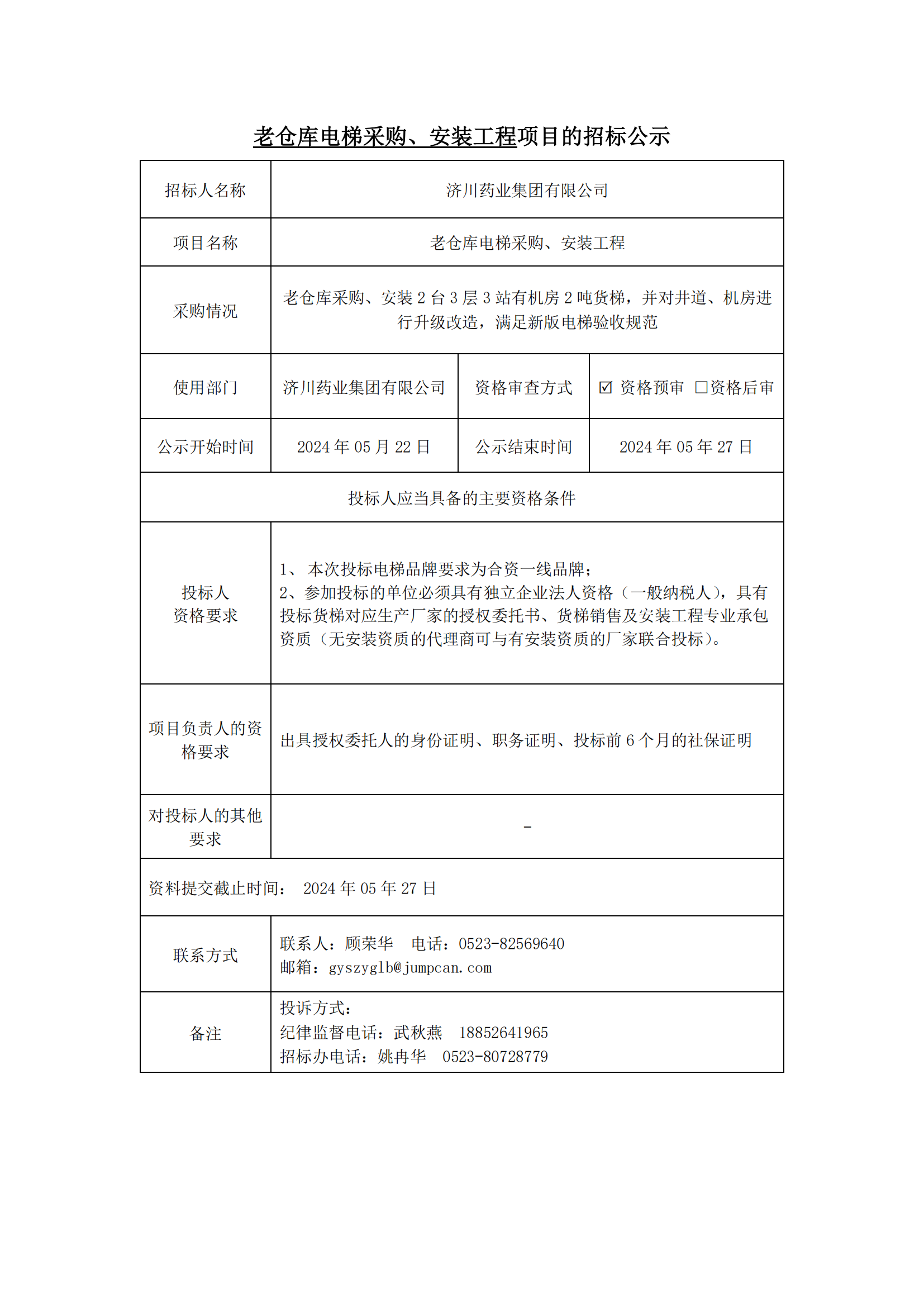 老仓库电梯采购、安装工程