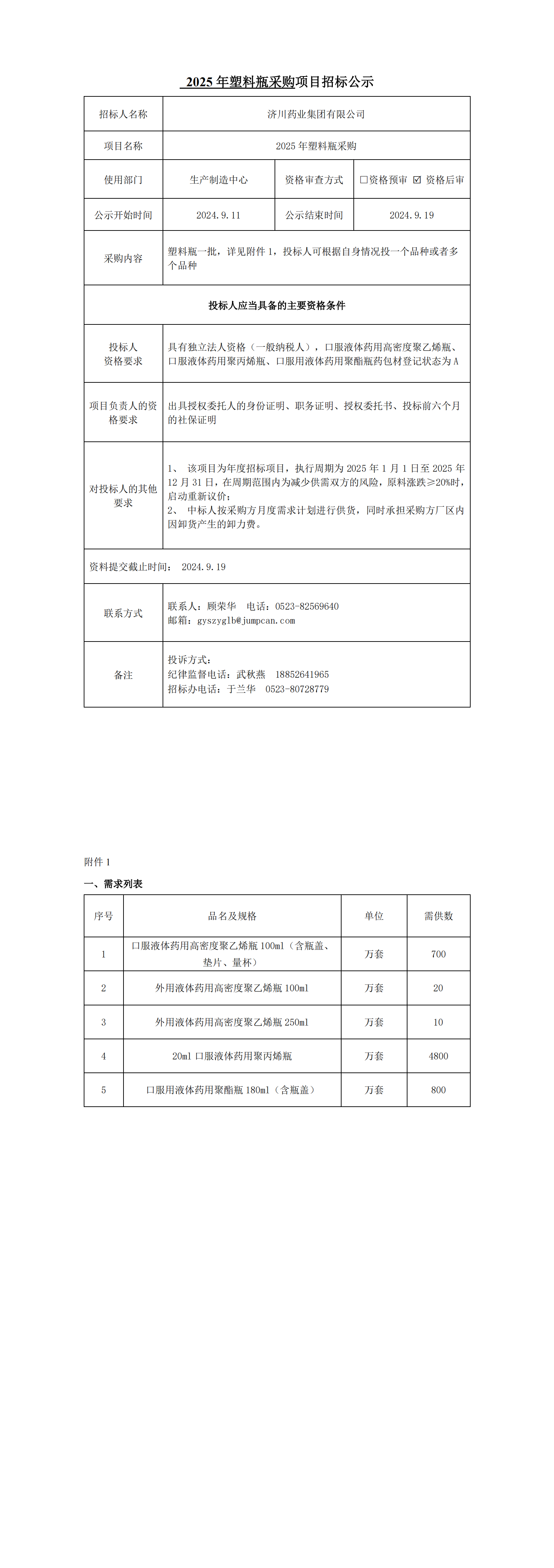 2025年塑料瓶招标采购项目