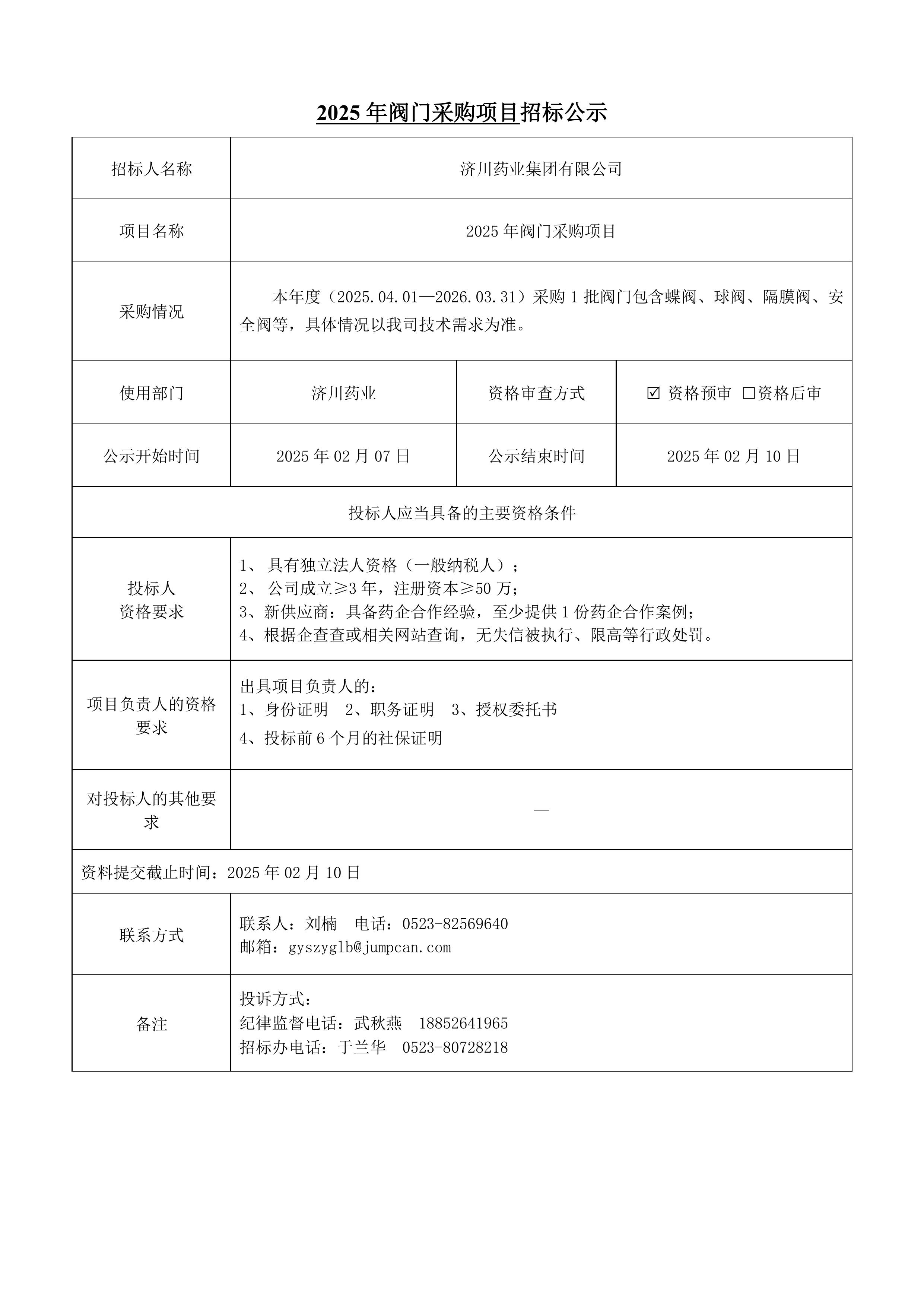 2025年阀门采购项目招标公示