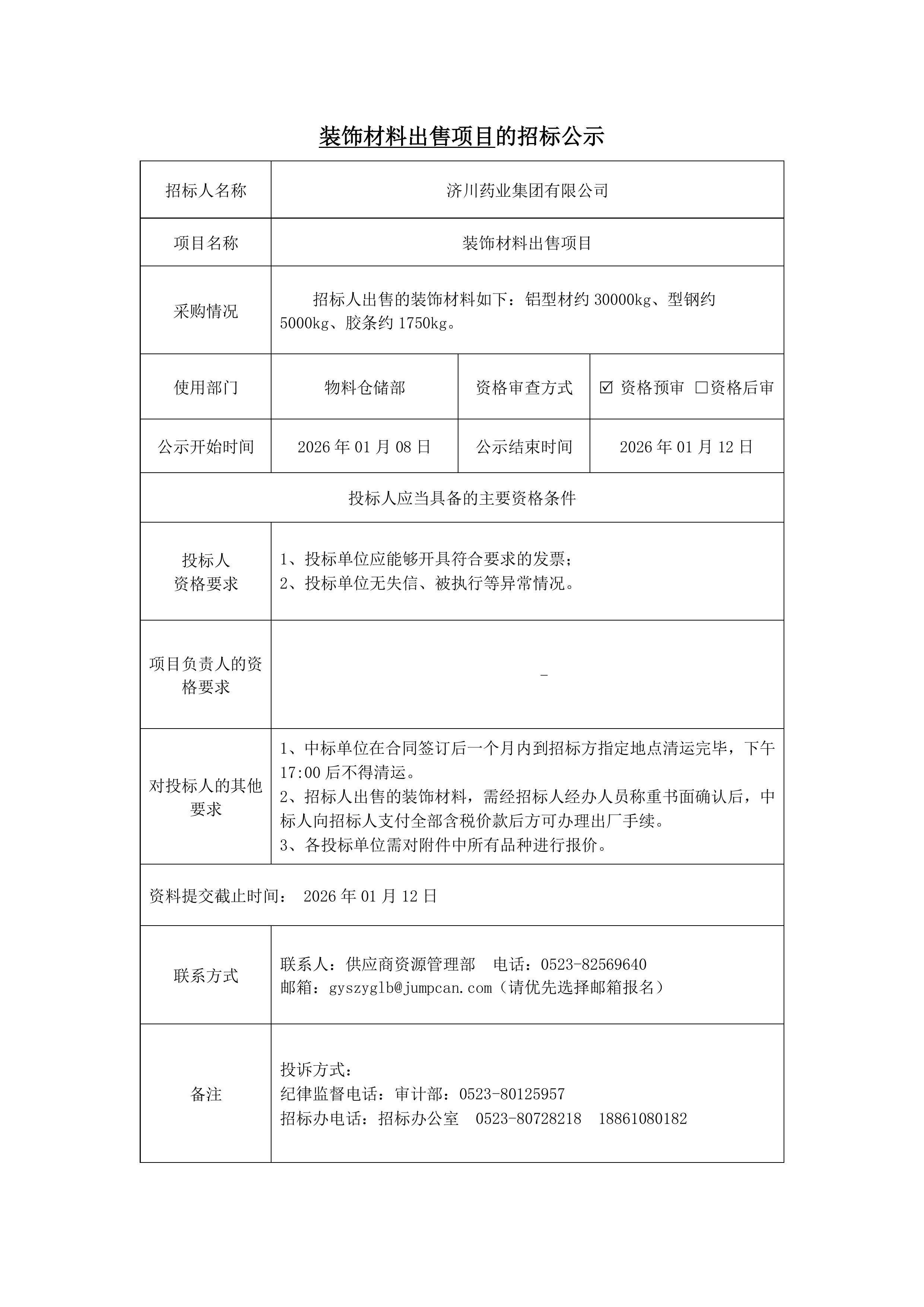 装饰材料出售项目招标公示