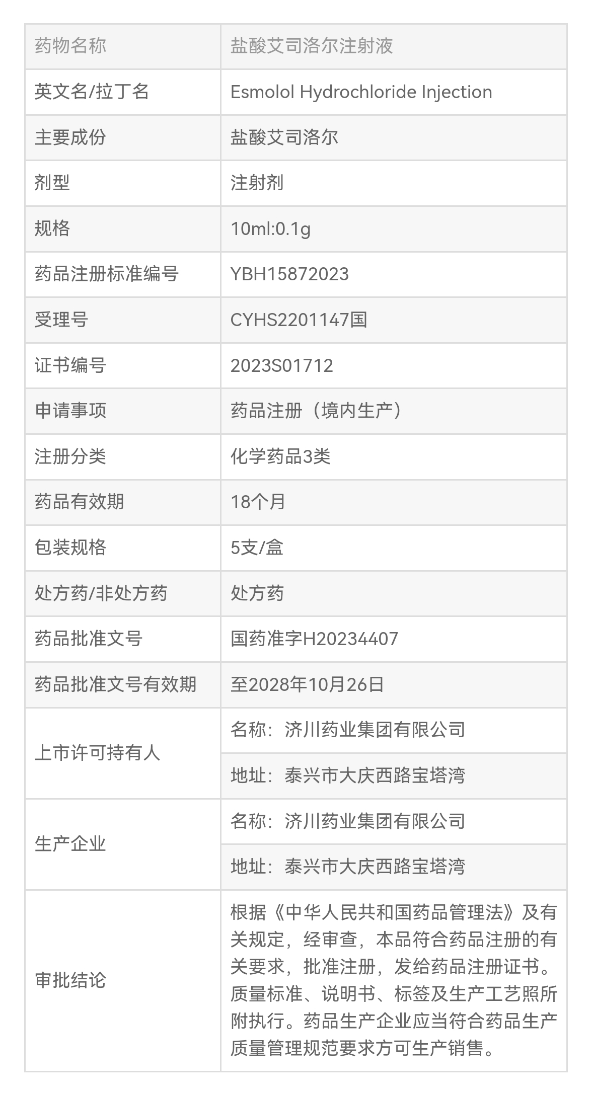 日前,济川药业收到国家药品监督管理局核准签发的盐酸艾司洛尔注射液《药品注册证书》(证书编号:2023S01712)和布洛芬混悬液《药品注册证书》(证书编号:2023S01765)。两个品种均被纳入国家医保药品目录,视同通过仿制药质量和疗效一致性评价。