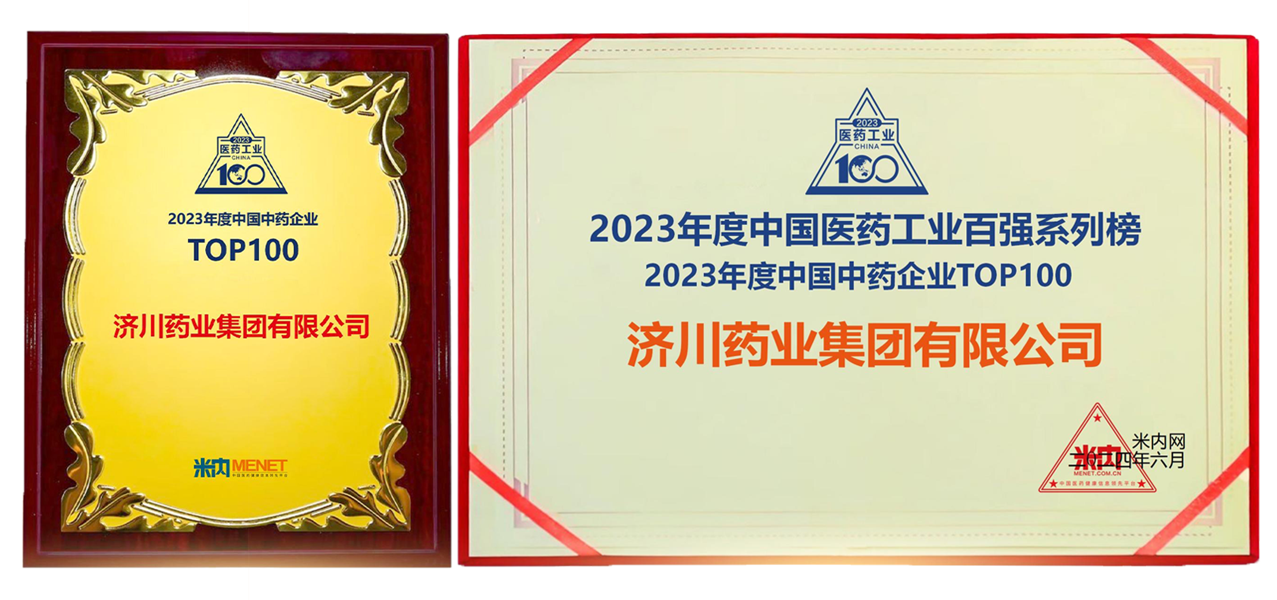 6月25日,2023年度中国医药工业百强系列榜单重磅发布,济川药业集团凭借在中医药传承创新发展中取得的显著成绩,荣登“中国中药企业TOP100”第8位,进一步彰显了企业在医药行业的领先地位。