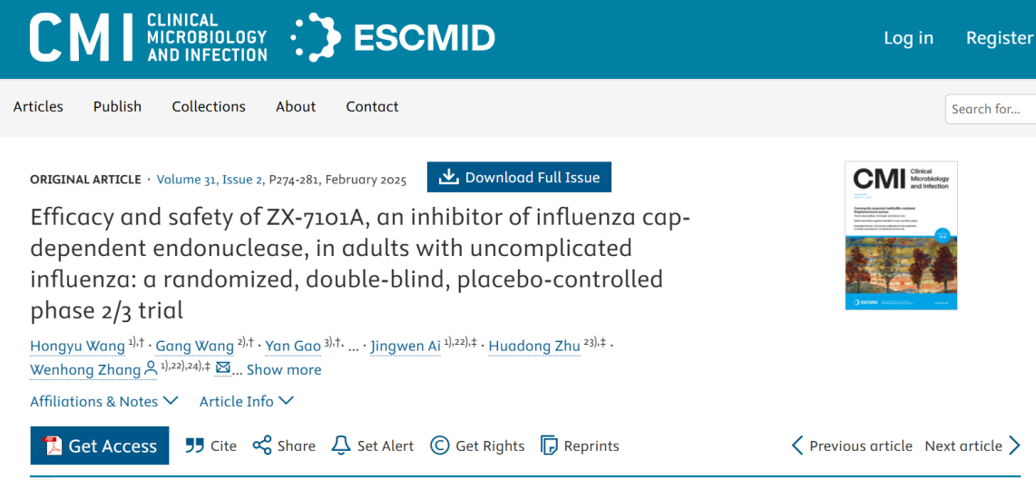[3] Zhang J. et al. Safety, tolerability, and pharmacokinetics of a novel anti-influenza agent ZX-7101A tablets in healthy chinese participants: A first-in-human phase I clinical study. Int J Antimicrob Agents. 2025 Jan;65(1):10738.