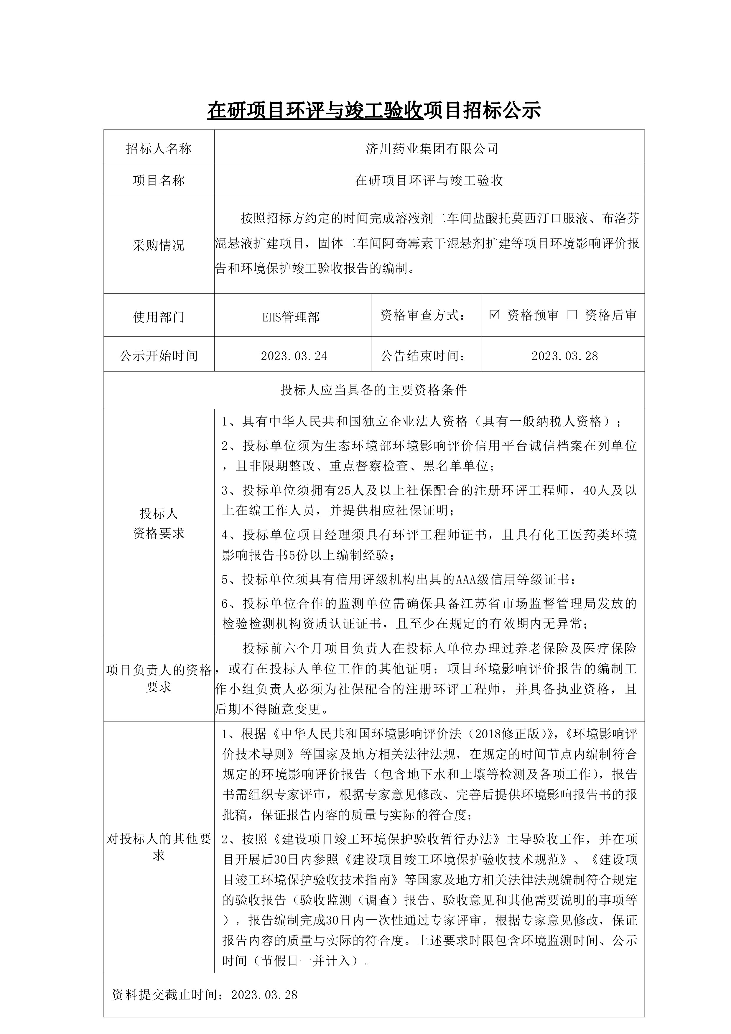 在研项目环评与竣工验收招标公示
