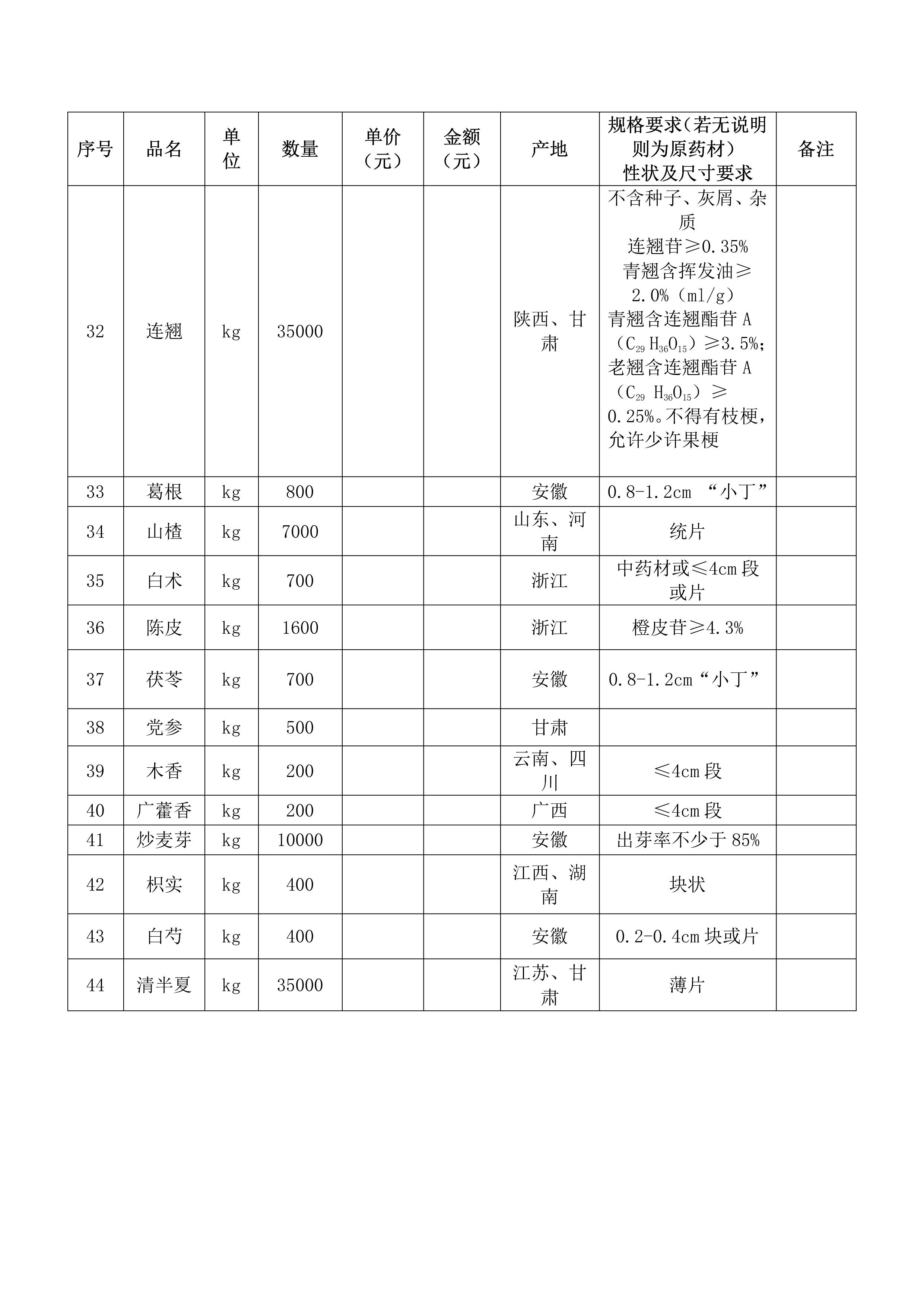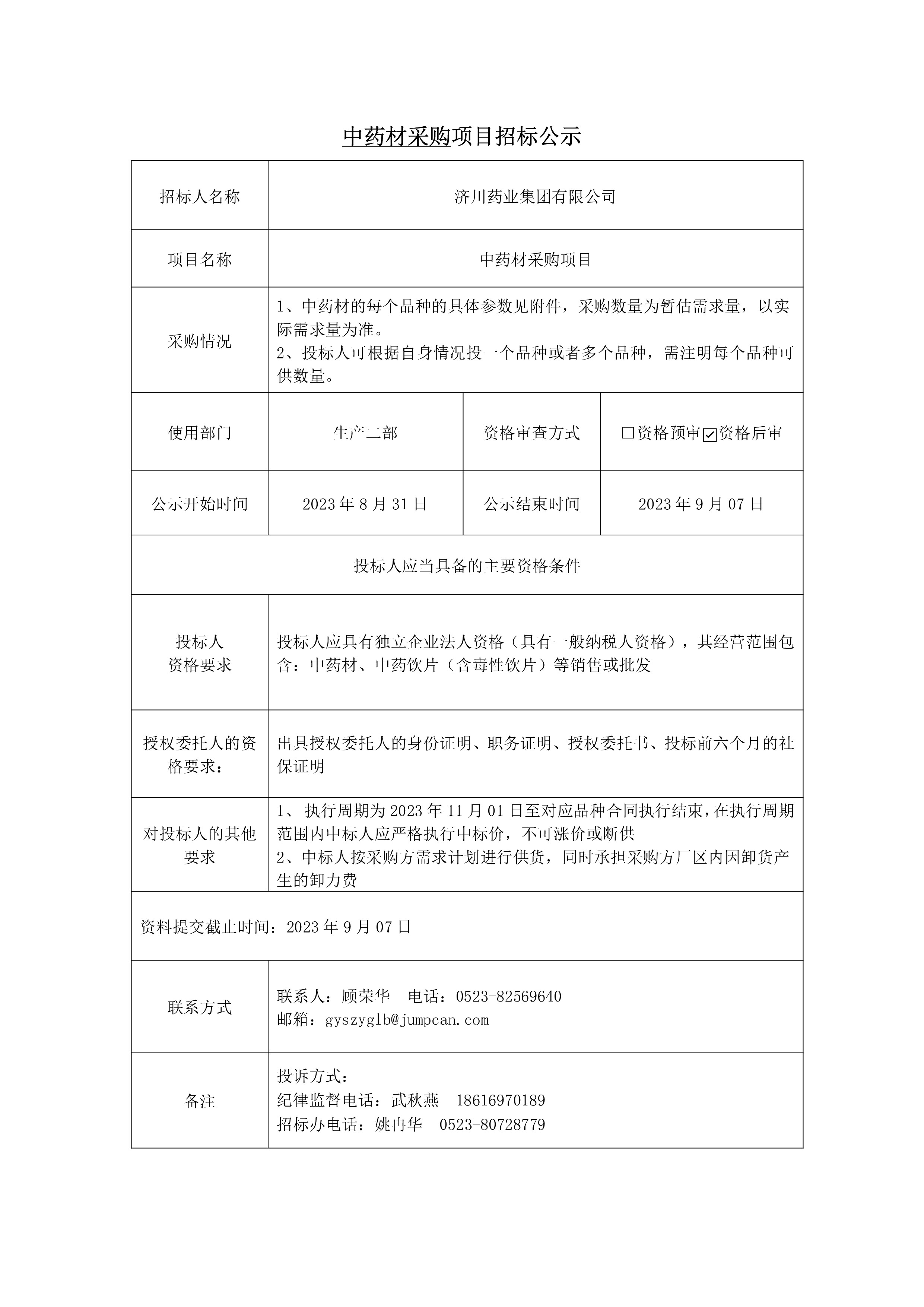 中药材采购项目招标公示