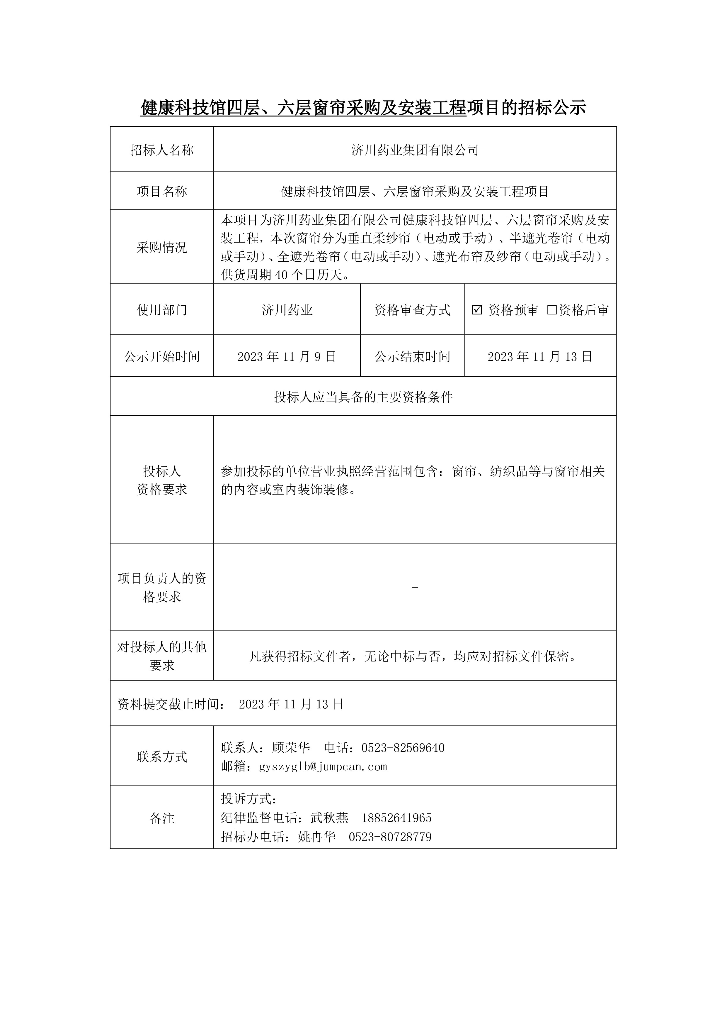 健康科技馆四层、六层窗帘采购及安装工程项目的招标公示