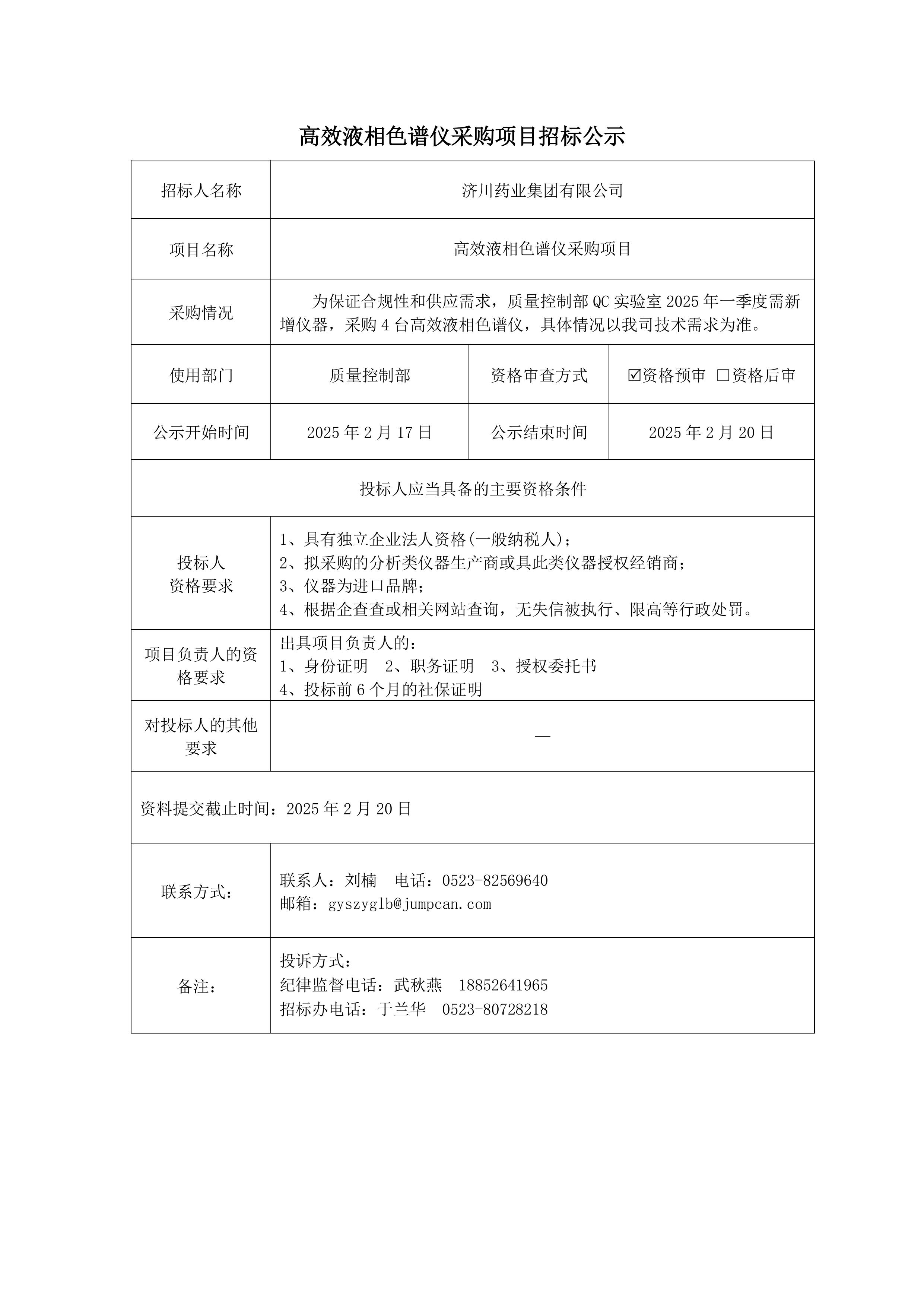高效液相色谱仪采购项目招标公示