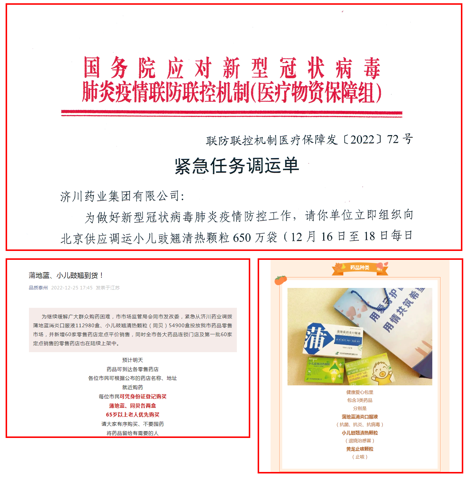 中国宋庆龄基金会对济川药业第一时间协调优质资源,以最诚挚的情怀、最高的效率帮助基金会解决应急药品短缺等实际困难致以感谢。在此之前,我司还联合多地党政部门,免费发放包含准字号、消字号产品的健康爱心包,受到了多方好评。