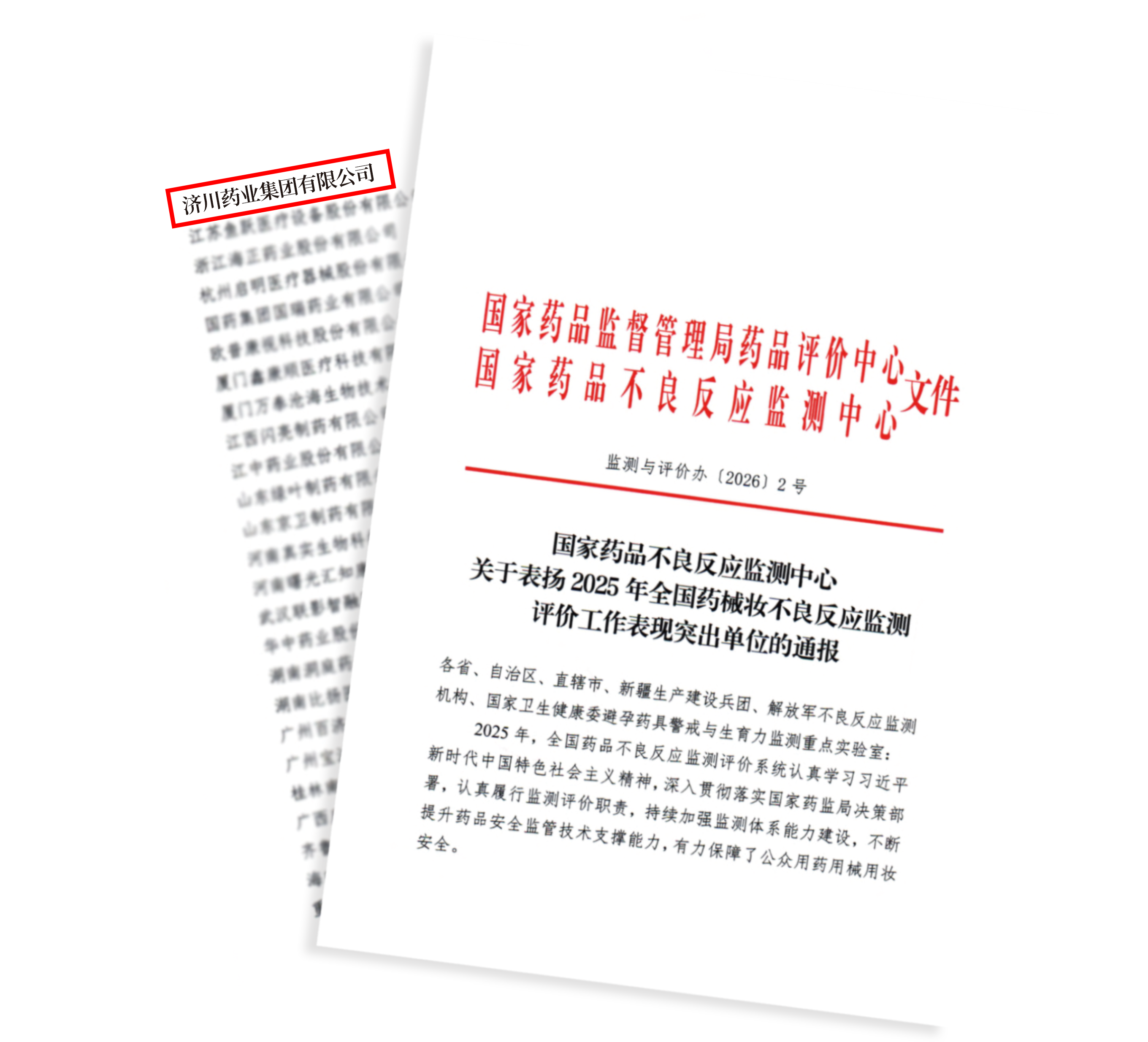 近日,国家药监局药品评价中心及国家药品不良反应监测中心对2025年度工作表现突出的单位进行通报表扬,济川药业集团凭借在药品不良反应监测评价工作中的突出表现,荣获“2025年药械妆不良反应监测评价工作表现突出药械妆企业”称号。